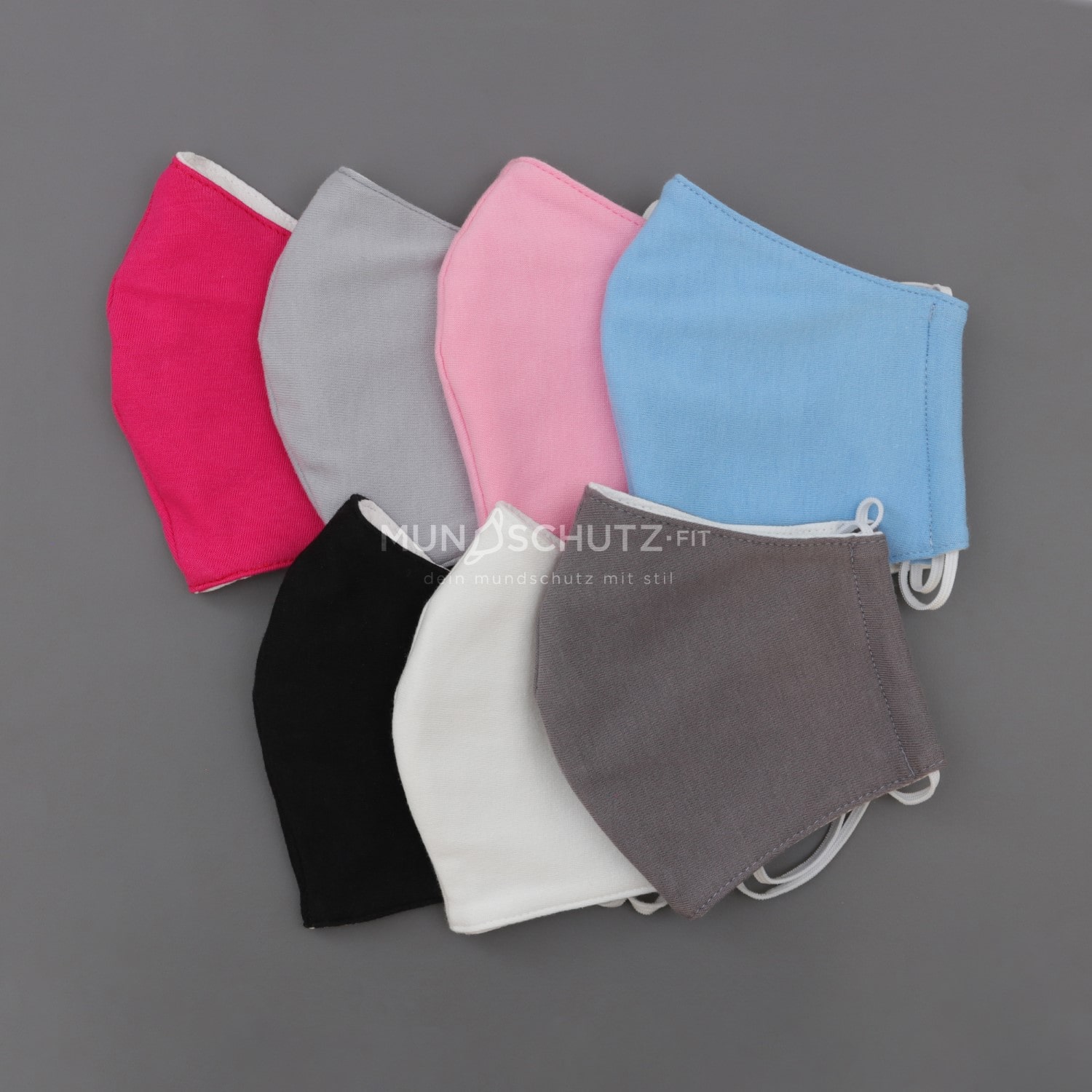 Der wählbare besonders pflegeleichte Außenstoff ist ebenfalls wie die restlichen drei Spezial-Stofflagen nach Bedarf bis 50°C Temperatur waschmaschinengeeignet. Auch in den Trockner kann diese Maske bei mittlerer Stufe rein. Die Wiederverwendung ist somit unbegrenzt möglich.